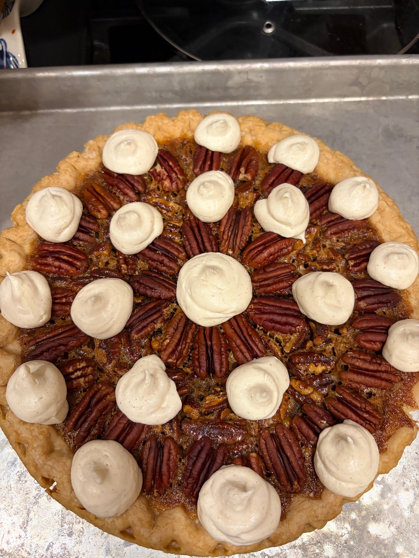 Pecan Pie w/ Cinnamon Maple Cream Cheese Frosting: Pecan pie is the best pie, and I will fight anyone who says otherwise. This was my main contribution for the Mirza family Thanksgiving potluck this year, but I wanted to jazz it up, so I made cinnamon maple cream cheese frosting and frosted the pie just enough for each slice to get a taste. This might be overwhelming for folks that think pecan pie is already too sweet, but for me it captured notes of my favorite ice cream flavor, Butter Pecan. The cream cheese also helps cut through the sweetness just a bit while making it feel like a decadent dessert.